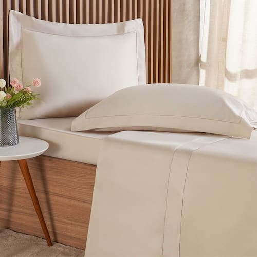 • 1 Lençol com Elástico Ricamo 300 Fios 100% Algodão 140x190x30cm
