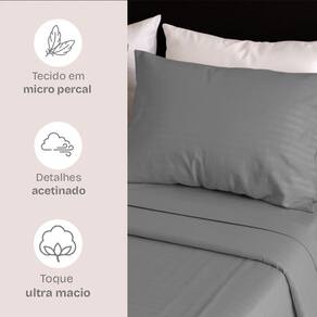 Jogo de Cama Casal 4 peças Micropercal Acetinado Bf Colchões - Grafite | Cinza
