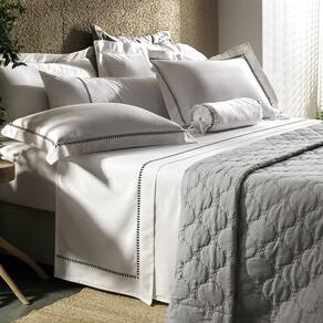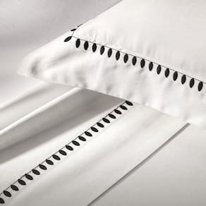 Disponível em três versões de bordado branco, preto ou cinza o Cerclê é uma peça-chave para quem valoriza sofisticação atemporal. Para um toque extra de charme, o conjunto conta ainda com opções coordenadas como capa de almofada rolo e fronha body pillow.