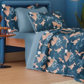 Jogo de Cama Casal Atlantix 4 Pçs 138x188x30 100% Algodão Era dos Dinossauros -
