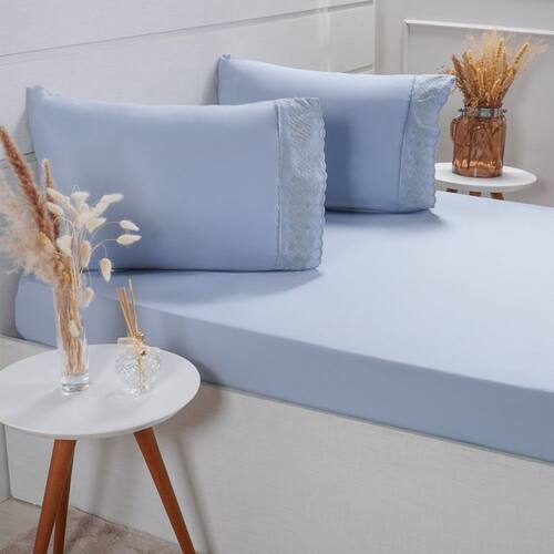 Jogo de Cama Casal Broderie 3 Pçs Bordado Inglês 138x188x30cm Blue -