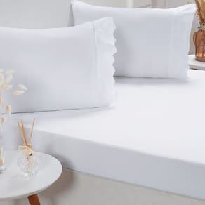 Jogo de Cama Casal Broderie 3 Pçs Bordado Inglês 138x188x30cm Branco -