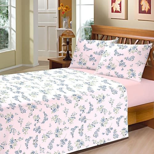 O lençol de cima e as fronhas apresentam uma delicada estampa floral e o lençol de baixo com elástico é em tom rosa. Uma combinação perfeita para o seu estilo de quarto, deixando-o muito mais bonito e sofisticado.