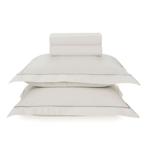 O Jogo de Cama Casal Deliz Branco Karsten confeccionado em base de 200 fios e composição 100% algodão, possui sobre lençol com dobra feita, fronhas com 3 abas de 4cm e ponto Royal cinza e lençol com elástico liso tinto. Modelo clássico, o jogo de cama Deliz tem o toque especial do ponto Royal que deixa a cama mais clean e aconchegante. O jogo de cama é composto por 4 peças sendo o sobre lençol no tamanho de 2,20m x 2,50; lençol de elástico de 1,38m x 1,88m e altura do colchão de 35cm e a fronha com medida padrão de 50cm x 70cm. Monte sua cama e sua casa com sua personalidade única combinando o jogo de cama Deliz com uma colcha ou edredom com detalhe cinza ou aposte somente em itens complementares como almofada e manta para dias mais amenos.