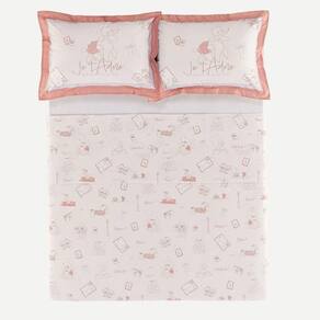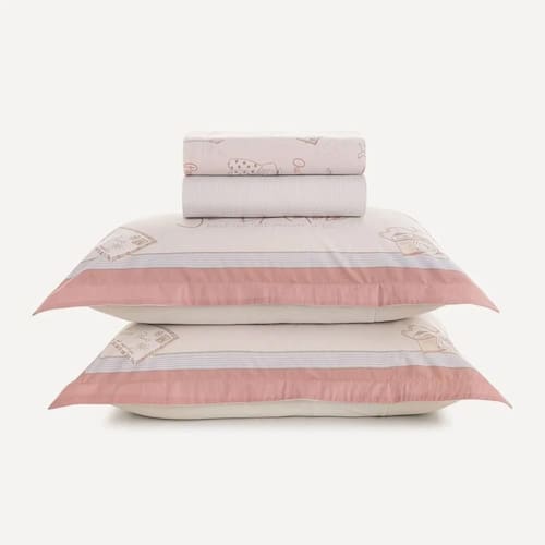 Inspirado no charme parisiense, o jogo de cama Jolie encanta com sua estampa de cachorrinhos adoráveis, laços e cartões-postais delicados. A fronha dimensionada e o sobre lençol em tom rosado criam uma atmosfera romântica e divertida. O lençol com elástico tem padronagem listrada em azul, adicionando contraste moderno e elegante. Composta por elementos lúdicos e suaves, essa peça proporciona conforto e estilo para o quarto infantil, sendo ideal para uma decoração delicada e cheia de personalidade.