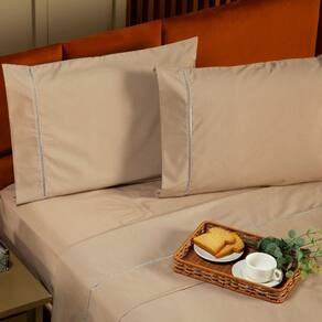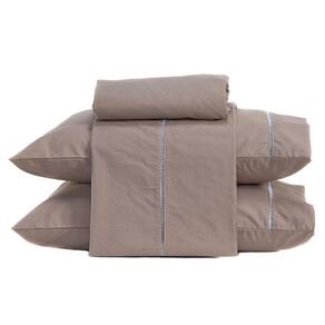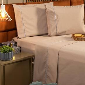 Jogo De Cama Ponto Palito Liso Casal Padrão 04 Peças - Percal 200 Fios Cor Caqui