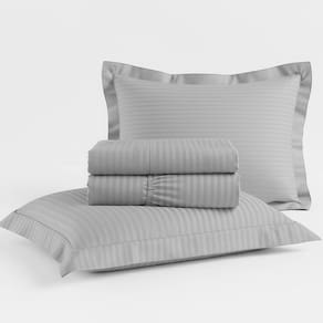 Contém: • 1 Sobrelençol: 220 x 240 cm • 1 Lençol com elástico: 138 x 188 x 30 cm • 2 Fronhas com: 50 x 70 cm