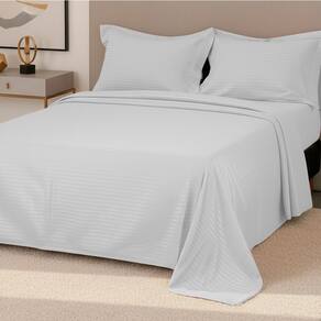 5. Detalhe adamascado: Visual refinado que valoriza a decoração e traz elegância ao quarto. Contém: • 1 Sobrelençol: 220 x 240 cm • 1 Lençol com elástico: 138 x 188 x 30 cm • 2 Fronhas: 50 x 70 cm