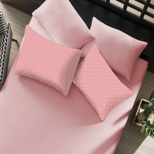 Jogo de Cama Casal Portallar Elegance Percal Misto 60/40 150 fios 50% Algodão 50% Poliéster Poa 3 Peças Rosa Orquídea