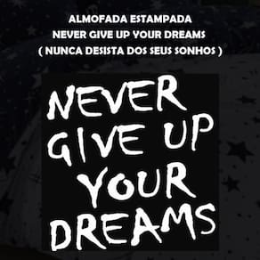 1 almofada exclusiva da marca de 45cm x 45cm - preto com estampa em branco - Frase: Never give up your dreams Nunca desista dos seus sonhos