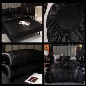 Jogo de cama Casal Queen completo 7 peças cetim toque de seda - Preto com Prata