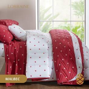 Jogo de Cama Casal Sultan 180F Sonhare Prata Coração 4 Peças Cor: Malbec Descrição Jogo De Cama Casal180 Fios Sultan Sonhare Prata Coração O Jogo de Cama algodão e poliéster proporciona noites de sono mais tranquilas e confortáveis. Confeccionado em tecido algodão e poliéster com sua composição em 180 fios, traz conforto e sensação de maciez com um toque leve e macio. Fronha com aba o tecido calandrado e com anti-pilling,que impede a formação de bolinhas nas peças, prolongando a durabilidade e garantindo a maciez. Suas cores e estampas atraentes, deixam seu ambiente mais alegre com um toque de modernidade. Beleza e mais tempo de conservação do produto com caimento perfeito. Contém: 1 Lençol de cima: 2,20m x 2,50m 1 Lençol de elástico: 1,38m x 1,88m x 30cm de altura 2 Fronhas: 50cm x 70cm Cada peça deste conjunto foi pensada para oferecer a máxima qualidade, conforto e estilo. Ideal para quem aprecia a sofisticação nos detalhes e busca transformar o quarto em um espaço de puro conforto e beleza. Adquira o seu Conjunto de Cama Linha Prata 180 Fios Sonhare Da Sultan e sinta a diferença todas as noites Instruções de lavagem: Lavar à temperatura máxima de 30C Não usar alvejante à base de cloro Não usar secadora Pendurar na vertical sem torcer Passar à temperatura máxima de 150C Não limpar à seco Limpeza a úmido em processo normal Não incluso Edredom / Colcha e produtos de Decoração da foto.