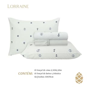 Contém: 1 Lençol de cima: 2,20m x 2,50m 1 Lençol de elástico: 1,38m x 1,88m x 30cm de altura 2 Fronhas: 50cm x 70cm