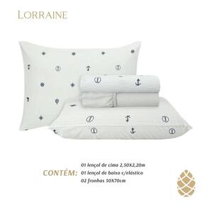 Contém: 1 Lençol de cima: 2,20m x 2,50m 1 Lençol de elástico: 1,38m x 1,88m x 30cm de altura 2 Fronhas: 50cm x 70cm