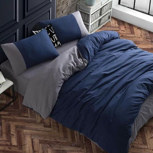 Jogo de cama marinho com cinza - 7 peças