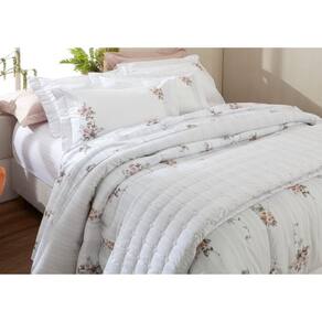 Jogo de Cama Casal Vida Bela Os jogos de cama da linha Vida Bela da Kacyumara são produzidos em 100% algodão, percal 200 fios e possui um toque macio e aconchegante.Possui também a tecnologia antipilling, que evita que o tecido forme bolinhas.Perfeito para a decoração da sua cama. O jogo de cama contém:1 lençol com vira 2,20m x 2,40m1 lençol com elástico 1,40m x 1,90m x 30cm2 fronhas 50 x 70 cm Material: 100% algodão, Percal 200 FiosEstampa: VereneMarca: Kacyumara Obs: imagem ilustrativa. O edredom e cobreleito não acompanham o jogo de cama.