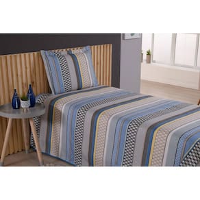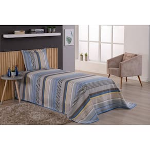 Contém: 01 cobre leito solteiro 2,20m x 1,60m. 01 fronha 0,70cm x 0,50cm.