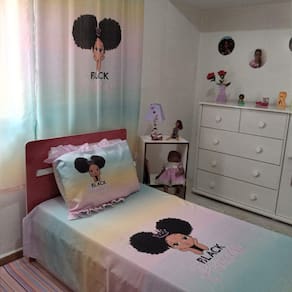 O jogo de cama Black Princess, tem um fundo colorido e como estampa principal, uma linda princesa negra. Composto 100% poliéster, com uma estampa digital que não desbota, além de ser super macio.