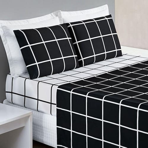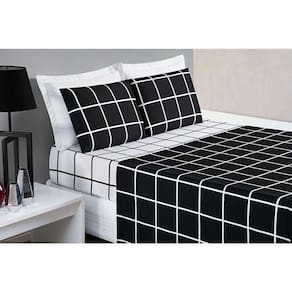 O jogo de cama Austin é super moderno e prático. Confeccionado em tecido micropercal 200 fios em estampa grid, traz suavidade e conforto ao seu ambiente.