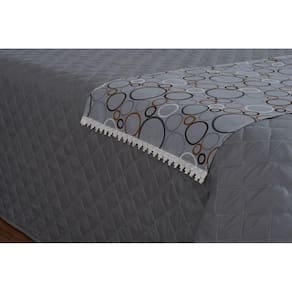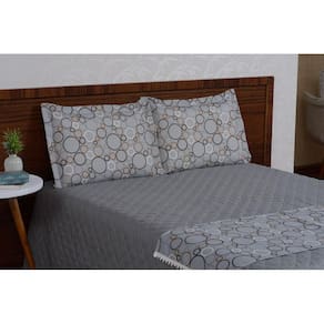 Jogo de cama com lençol e fronhas e xale 5 peças cinza queen Cobre leito valencia casal queen 5 peças Contém: 01 cobre leito 2,50m x 2,20m. 02 portas travesseiro 0,70cm x 0,50cm. 01 xale 1,70 x 0,50 01 lençol branco com elástico para cama 1,98m x 1,58m x 0,25cm