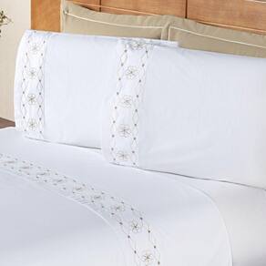 Jogo De Cama Damasco Queen 4 Peças 100% Poliéster 200 Fios - Branco/bege Experimente a sensação de dormir nas nuvens com o Jogo de Lençol Damasco. Confeccionado em micropercal 200 fios, seu tecido de toque suave oferece conforto superior. A beleza do conjunto está no detalhe ricamente bordado na vira do lençol e nas fronhas, que adiciona um charme discreto e elegante, tornando sua cama o centro das atenções com um visual clean e sofisticado.