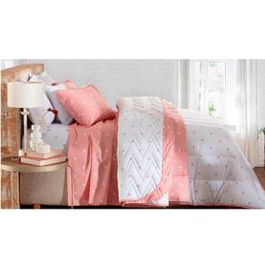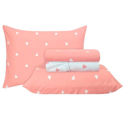 Jogo de Cama Duplo Casal 4 Peças Percal 180 Fios Coração Rose Sonhare Prata - Sultan