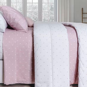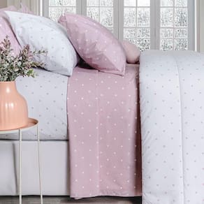 Jogo de Cama Duplo Casal 4 Peças Percal 180 Fios Pettit Rosa Sonhare Prata - Sultan O Jogo de Cama confeccionado em algodão e poliéster e com sua composição em 180 fios, traz conforto, aconchego e sensação de maciez proporcionando noites de sono mais tranquilas e confortáveis. Sua cor deixa seu ambiente mais alegre. Beleza e mais tempo de conservação do produto com caimento perfeito. Sua confecção usa tecnologia Americana "No Iron". Essa tecnologia torna o tecido mais resistentes a rugas, não precisando passar. Conteúdo da embalagem: 1 Lençol de cima 250x220cm (CxL) 1 Lençol de baixo com elástico para colchão de 188x138cm até 30cm de altura (CxLxA) 2 Fronhas 70x50cm (CxL) Composição: Tecido: 65% Algodão 35% Poliéster Percal 180 fios Maciez do algodão Fácil de passar Tecnologia Americana Cor: Lençol de Baixo na cor Branco com pontos Rosa e o Lençol de Cima e as Fronhas na cor Rosa e pontos Branco Fabricante: Sultan Linha: Sonhare Prata Modelo: Petit Rosa Instruções de lavagem: Lavar à temperatura máxima de 30°C Não usar alvejante à base de cloro Secagem em tambor rotativo, temperatura mínima Passar à temperatura máxima de 110°C Não limpar à seco Limpeza a úmido profissional em processo normal - Não acompanha demais itens de decoração da foto. Devido à diferença de luz e tela do seu aparelho, a cor do item pode ser ligeiramente diferente das imagens. Santo Magazine