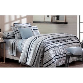 Cor: Lençol de Baixo na cor Azul e o Lençol de Cima e fronhas com Listra de tom de Azul