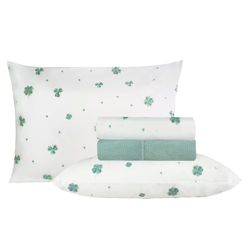 Jogo de Cama Duplo Quen 4 Peças Percal 180 Fios Trevo da Sorte Sonhare Prata - Sultan