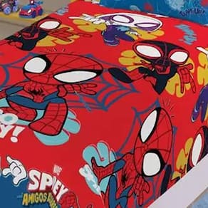 O jogo de cama da coleção Spidey estampa o incrível herói e seus amigos espetaculares, com aranhas, teias e muita aventura. Seu tecido microfibra é super macio, não amassa, tem um ótimo caimento na cama e uma boa durabilidade. A peça vem para aconchegar e divertir a noite das crianças, para colorir seus momentos preferidos pertinho desses personagens tão amados