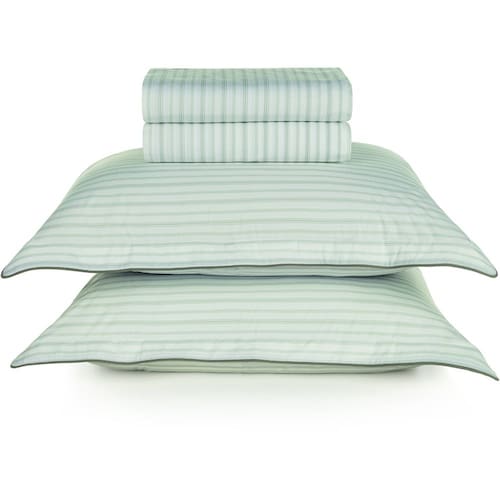 -Sobre lençol estampado com dobra feita e lençol com elástico estampado;