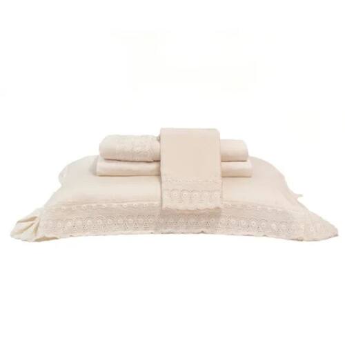 . 01 sobrelençol com vira e aplicação de renda - 260 x 280 cm com Dobra feita