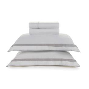 Com toque moderno e elegante, o jogo de cama Lara se destaca pelos detalhes em cordonê e filete contrastante presentes nas fronhas e na vira do sobre lençol. Confeccionado em cetim de algodão 300 fios egípcio, proporciona um toque sedoso e caimento perfeito. Versátil, pode ser coordenado com todos os produtos da Karsten, especialmente da cama Bossa, formando composições que vão do clássico ao contemporâneo. Ideal para quem busca uma cama minimalista, mas com personalidade e acabamento refinado.