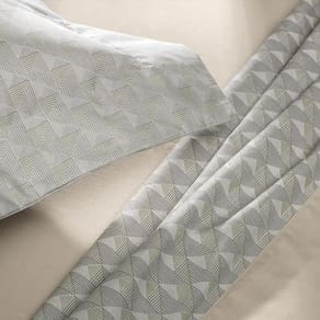 A estampa Fina Arte combina geometria e leveza em um desenho contemporâneo, que alterna padrões triangulares com efeito de textura em tons neutros e sofisticados. A composição simétrica e sutil oferece uma proposta moderna e elegante, perfeita para ambientes minimalistas e para quem busca um visual refinado, mas sem excessos.