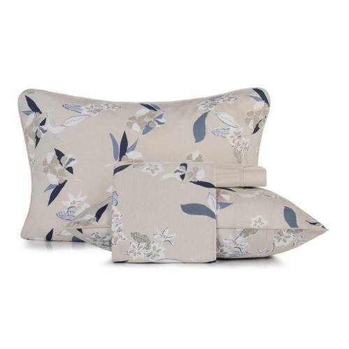 A estampa Kyoto combina a suavidade do bege mocha com flores e folhagens em tons de azul e cinza, criando um visual sofisticado e acolhedor para o quarto. Confeccionada em puro algodão de alta maciez, a coleção oferece edredom com enchimento em poliéster thermobonder leve, colchas com viés e porta-travesseiros no tamanho padrão com abas e acabamento em matelassado quadriculado, que mantém o enchimento bem distribuído e confere um relevo elegante. O jogo de cama completo traz lençol superior com dobra feita, lençol inferior com elástico que se adapta a colchões queen e king de até quarenta centímetros de altura e fronhas estilo envelope com viés e acabamento em rolotê. Já o jogo de cama simples é ideal para o dia a dia, com lençol de elástico e fronhas envelope sem abas. Uma coleção versátil que une conforto, praticidade e beleza em cada detalhe, perfeita para transformar sua cama em um refúgio acolhedor.