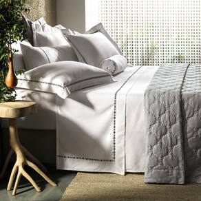Disponível em três versões de bordado branco, preto ou cinza o Cerclê é uma peça-chave para quem valoriza sofisticação atemporal. Para um toque extra de charme, o conjunto conta ainda com opções coordenadas como capa de almofada rolo e fronha body pillow.