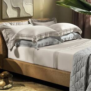 Disponível em bege, cinza e branco, este jogo acrescenta sofisticação, aconchego e elegância à decoração do seu quarto.