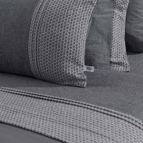 Bastante leve e de trama simples, o chambray é um tecido bastante macio e respirável, com alta capacidade de absorção de umidade, o que torna as noites de sono muito mais confortáveis. Fácil de lavar e de secagem rápida, por conta de sua estrutura, o chambray é também pouco propenso ao pilling. A sua trama na coloração cinza azulada e o acabamento de efeito vintage expressam uma elegância minimalista que nunca sai de moda.
