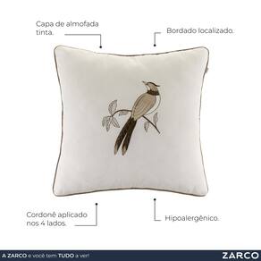 . Capa de almofada tinta com bordado localizado e cordonê aplicado nos 4 lados;