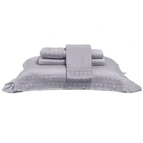 Jogo de Cama King com Renda Renascença Percal 300 Fios Buettner Cor: Prata Jogo de Cama King Cristal com Renda Renascença Percal 300 Fios Buettner