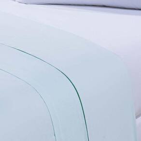 O Jogo de Cama Gran Moratta é confeccionado com tecido Percal 100% Algodão, o lençol de baixo e as fronhas são Brancos, o lençol de cima possui cor suave e detalhe em Vivo.
