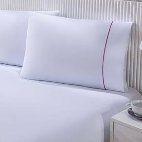 O Jogo de Cama Gran Moratta é confeccionado com tecido Percal 100% Algodão, é Branco e possui um toque de cor em seu detalhe em Vivo. A combinação perfeita para suas noites de sono! Produto composto por: 01 Lençol de Baixo para Colchão 1,93m x 2,03m x 0,40m 02 Fronhas 70cm x 50cm Composição: Percal 150 Fios 100% Algodão Marca: Enxovais Davy | Estampa: Não se Aplica | Medidas: 01 Lençol de Baixo para Colchão 1,93m x 2,03m x 0,40m02 Fronhas 70cm x 50cm | Número de Peças: 03 Peças | Material: Agodão | Cor Predominante: Branco E Rosa | Cama Indicada: King