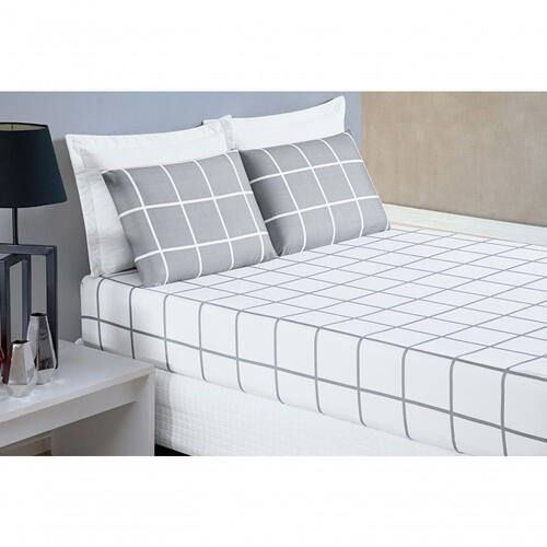 O jogo de cama Austin é super moderno e prático. Confeccionado em tecido micropercal 200 fios em estampa grid, traz suavidade e conforto ao seu ambiente.
