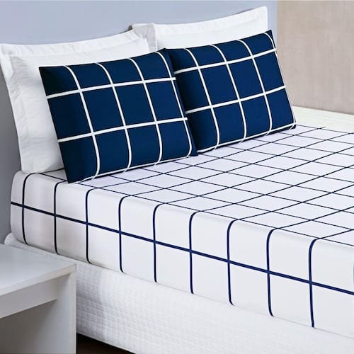 O jogo de cama Austin é super moderno e prático. Confeccionado em tecido micropercal 200 fios em estampa grid, traz suavidade e conforto ao seu ambiente.