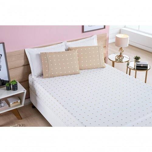 O Jogo de Cama Petit Poá possui tecido micro percal 200 fios com estampa clássica com bolinhas, é fácil de lavar e seca rápido!