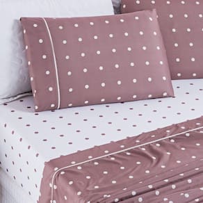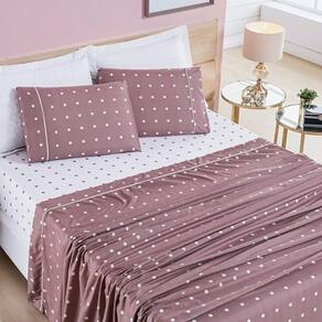 Jogo De Cama Lençol 200 Fios Petit Poá King 04 Peças - Rose