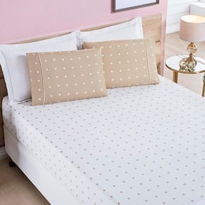 Jogo De Cama Lençol 200 Fios Petit Poá Solteiro 02 Peças - Caqui