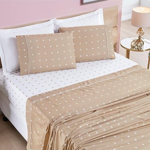 Jogo De Cama Lençol 200 Fios Petit Poá Solteiro 03 Peças - Caqui O Jogo de Cama Petit Poá possui tecido micro percal 200 fios com estampa clássica com bolinhas, é fácil de lavar e seca rápido! Produto composto por: 01 Lençol de cima 2,40m x 1,50m 01 Lençol de baixo c/ elástico p/ colchão de 1,88m x 88cm x 30cm de altura 01 Fronha 70cm x 50cm Composição: Tecido: 100% Poliéster Marca: Bia Enxovais | Estampa: Não se Aplica | Medidas: 01 Lençol de cima 2,40m x 1,50m01 Lençol de baixo c/ elástico p/ colchão de 1,88m x 88cm x 30cm de altura01 Fronha 70cm x 50cm | Número de Peças: 03 Peças | Material: Poliéster | Cor Predominante: Caqui | Cama Indicada: Solteiro