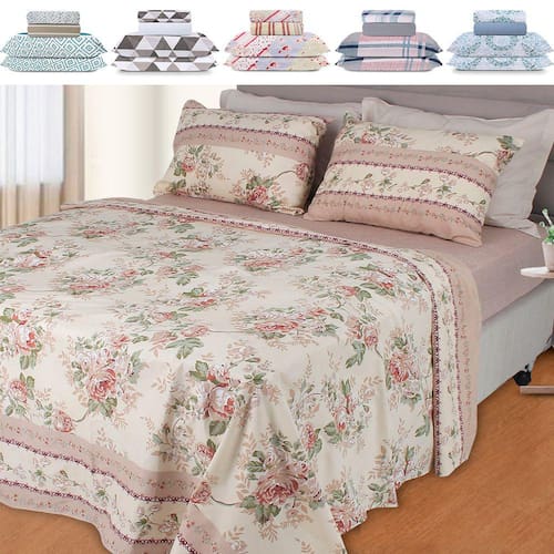 Características: - Tamanho: Queen - Lençol de baixo com Elástico - Tecido: 100% Poliéster - Secagem Rápida