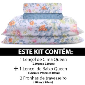Este Kit Contém: 1 Lençol de cima (2,20cm x 2,20cm) 1 Lençol com Elástico (1,58cm x 1,98cm) 2 Fronhas de Travesseiros (50cm x 70cm)